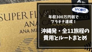 旅行 【ANA SFC修行】年収300万円弱でプラチナ達成!沖縄発・全11旅程の費用とルートまとめ 年収300万円弱の一般会社員が2025年にSFC修行を達成!沖縄発・全11旅程の費用(航空券代約46.5万円)・ルート・PP単価をすべて公開。海外発券やタッチ修行も活用した等身大の修行記録です。 2026.04.19 旅行